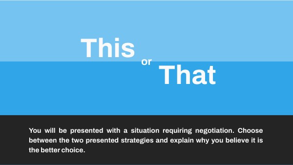 You will be presented with a situation requiring negotiation. Choose between the two presented strategies and explain why you believe it is the better choice.