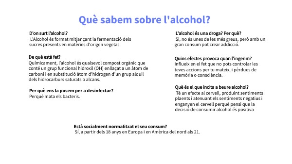 L'alcohol és una droga? Per què? Si, no és unes de les més greus, però amb un gran consum pot crear addicció.
