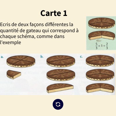 Ecris de deux façons différentes la quantité de gateau qui correspond à chaque schéma, comme dans l'exemple