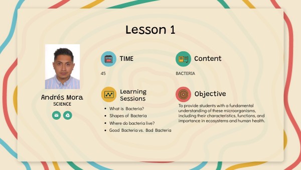 What is bacteria, and how do they differ from other microorganisms? What are the common shapes of bacteria, and how do they influence bacterial function? Where do bacteria typically live and thrive in various environments? Can you explain the differences between beneficial (good) and harmful (bad) bacteria? How do bacteria reproduce, and what are the different methods they use? What are some examples of beneficial bacteria and their roles in human health and ecosystems? What new things did you learn about bacteria today, and how do they affect our lives? How do you think scientists study bacteria, and why is it important to understand them? Reflect on where you might find bacteria in your daily life. How can you stay healthy while being mindful of bacteria around you? Draw a picture of what you think bacteria look like