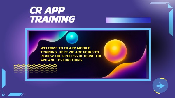 WELCOME TO CR APP MOBILE TRAINING. HERE WE ARE GOING TO REVIEW THE PROCESS OF USING THE APP AND ITS FUNCTIONS.