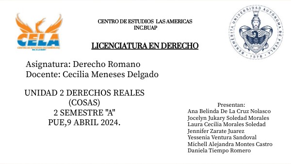UNIDAD 2 DERECHOS REALES (COSAS) 2 SEMESTRE "A" PUE,9 ABRIL 2024.