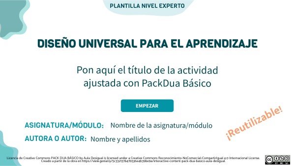 Licencia de Creative Commons PACK DUA BÁSICO by Aula Desigual is licensed under a Creative Commons Reconocimiento-NoComercial-CompartirIgual 4.0 Internacional License. Creado a partir de la obra en https://view.genial.ly/5c332137b47b536e4b39be9a/interactive-content-pack-dua-basico-aula-desigual.