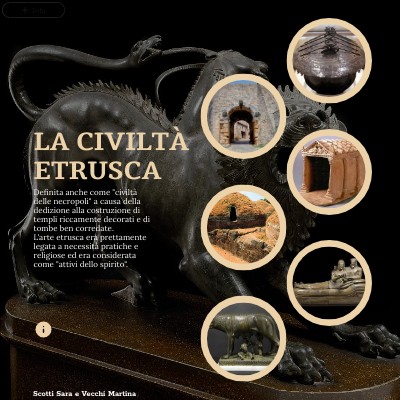 Definita anche come "civiltà delle necropoli" a causa della dedizione alla costruzione di templi riccamente decorati e di tombe ben corredate.L'arte etrusca era prettamente legata a necessità pratiche e religiose ed era considerata come "attivi dello spirito".