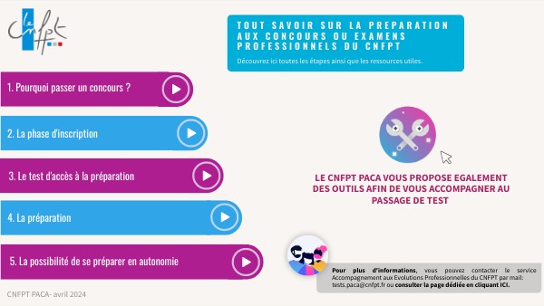 LE CNFPT PACA VOUS PROPOSE EGALEMENT DES OUTILS AFIN DE VOUS ACCOMPAGNER AU PASSAGE DE TEST