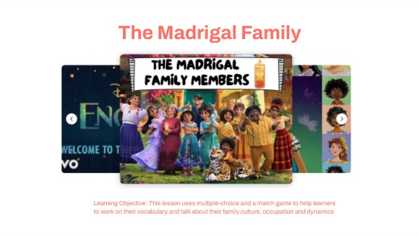 Learning Objective: This lesson uses multiple-choice and a match game to help learners to work on their vocabulary and talk about their family culture, occupation and dynamics