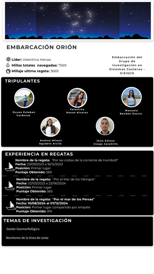 Lider: Valentina HenaoMillas totales navegadas: 7569 Millaje ultima regata: 3669