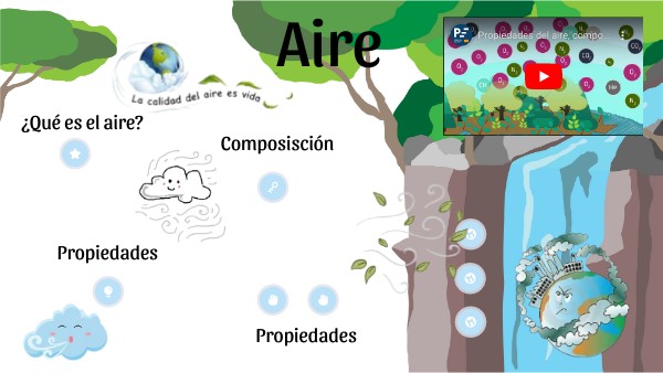 El aire es una mezcla de diferentes gases que componen la atmósfera; éste es comúnmente percibido y confundido con el viento. Se le considera uno de los 4 elementos.El aire está compuesto por diversos elementos gaseosos, que normalmente no pueden ser diferenciados ni percibidos por separado. Sin embargo, es posible licuar el aire en laboratorios (hacerlo líquido) y proceder a separar sus componentes. Además, el aire permite que se produzca el ciclo hidrológico, pues contiene vapor de agua, que produce las precipitaciones mediante la condensación y la formación de las nubes.