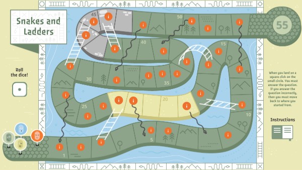 When you land on a square click on the small circle. You must answer the question. If you answer the question incorrectly, then you must move back to where you started from.