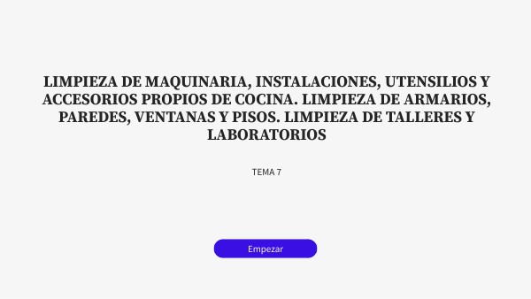LIMPIEZA DE MAQUINARIA, INSTALACIONES, UTENSILIOS Y ACCESORIOS PROPIOS DE COCINA. LIMPIEZA DE ARMARIOS, PAREDES, VENTANAS Y PISOS. LIMPIEZA DE TALLERES Y LABORATORIOS