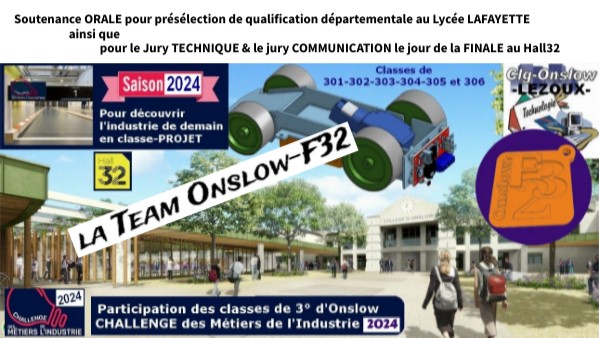 Soutenance ORALE pour présélection de qualification départementale au Lycée LAFAYETTE ainsi que pour le Jury TECHNIQUE & le jury COMMUNICATION le jour de la FINALE au Hall32