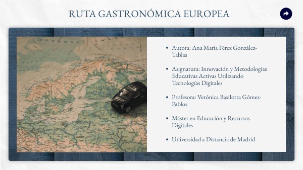 El tema principal es Europa y su gastronomía con ocasión del Día de Europa, fecha de cada vez más interés. Esta temática profundiza en los conocimientos de los primeros temas de la asignatura de inglés del primer trimestre Our World y Eat Well. Además, permite a los alumnos hacer uso del idioma en una situación real con personas diferentes y prestar su ayuda en el centro de forma activa. La pregunta guía del ABP sería «¿Cómo podemos diseñar una presentación que mejor represente a este país y su gastronomía dentro de la organización de la ruta gastronómica del centro para toda la comunidad por el Día de Europa?».