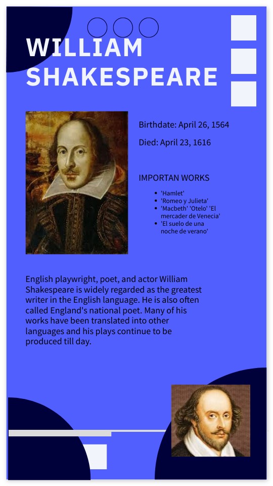 English playwright, poet, and actor William Shakespeare is widely regarded as the greatest writer in the English language. He is also often called England's national poet. Many of his works have been translated into other languages and his plays continue to be produced till day.