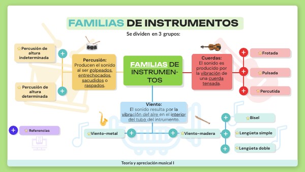 Aguilar, J. (5 de abril, 2024). Clasificación de los instrumentos musicales. [Presentación de Powerpoint] Mindomo. https://www.mindomo.com/es/mindmap/clasificacion-de-los-instrumentos-musicales-61b4ab13a4de48ef94e98051b5f10e71 CEIP. (5 de abril, 2024). Los instrumentos de viento: viento madera y viento metal - 4º Primaria. Blogspot. http://musicaenbaessipo.blogspot.com/2020/05/los-instrumentos-de-viento-viento.html Díaz, A. (5 de abril, 2024). Instrumentos de percusión I. [Presentación de Powerpoint] Emaze. https://www.emaze.com/@aooizqroi/instrumentos-de-percusión Escuela Municipal de Múeixa Antequera. (5 de abril, 2024). Vientos Madera. Emmantequera. https://emmantequera.com/vientos-madera/ Gonzalez, T. (5 de abirl, 2024). Los instrumentos musicales. Issuu. https://issuu.com/tergon37/docs/instrumentosmusicales Institución Educativa INEM. (5 de abril, 2024), Los instrumentos de cuerda o cordófonos. Webcolegios. https://www.webcolegios.com/file/c499bc.pdf Institución Educativa INEM. (5 de abril, 2024), Los instrumentos de viento. Webcolegios. https://www.webcolegios.com/file/ed2c32.pdf Musicocracia. (5 de abril, 2024). Organología de la música clásica: el viento madera. https://musicocracia.com/post/organologia-musica-clasica-viento-madera/141 Musicores. (5 de abril, 2024). Música 4º (8 – 12 de junio). Wordpress. https://musicoresblog.wordpress.com/2020/06/08/musica-4o-8-12-de-junio/
