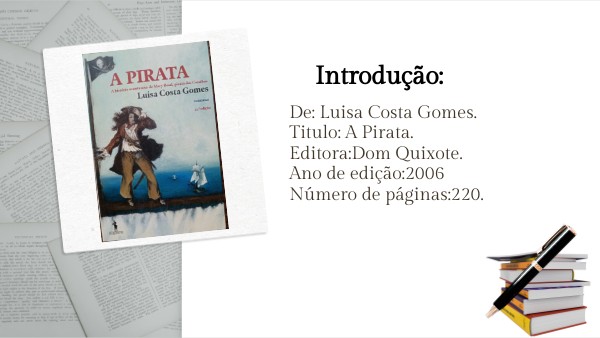 De: Luisa Costa Gomes.Titulo: A Pirata. Editora:Dom Quixote. Ano de edição:2006 Número de páginas:220.