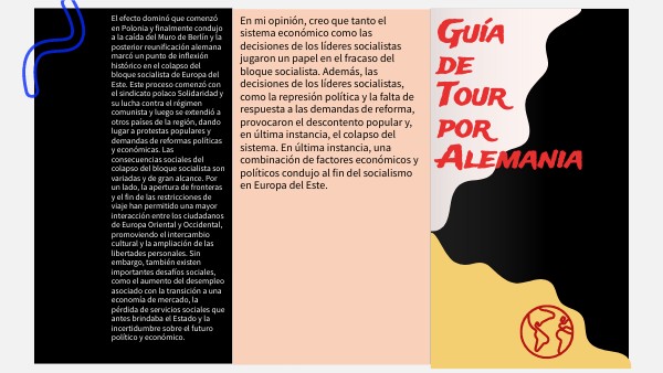 Referencias National Geographic España. (2024b, abril 5). National Geographic. https://www.nationalgeographicla.com/historia/2022/11/quien-construyo-el-muro-de-berlin#:~:text=La%20operaci%C3%B3n%20de%20construcci%C3%B3n%20del,13%20de%20agosto%20de%201961. National Geographic España. (2024c, abril 5). National Geographic. https://www.nationalgeographicla.com/historia/2022/11/que-fue-la-guerra-fria#:~:text=La%20Guerra%20Fr%C3%ADa%20fue%20un,otro%20alineado%20con%20el%20comunismo. National Geographic España. (2024d, abril 5). National Geographic. https://www.nationalgeographicla.com/historia/2022/11/que-fue-la-guerra-fria#:~:text=La%20Guerra%20Fr%C3%ADa%20enfrent%C3%B3%20durante,de%20una%20tercera%20guerra%20mundial.&text=La%20Guerra%20Fr%C3%ADa%20fue%20un,)%2C%20entre%201947%20y%201991. De Bernabe, L. V. (2018). La Unión Soviética: historia, elites y heráldica. Ucm. https://www.academia.edu/38061271/La_Uni%C3%B3n_Sovi%C3%A9tica_Historia_Elites_y_Her%C3%A1ldica Gorbachev, M. (1987). Perestroika and New Thinking for Our Country and the Whole World. [Discurso]. Soviet Union Government. Recuperado de http://www.gorby.ru/en/activity/period/period_46173/ BBC News Mundo. (2022, 31 agosto). Muere Gorbachov: qué fueron la «perestroika» y la «glasnost», las políticas de apertura que cambiaron la historia de la URSS y del mundo. BBC News Mundo. https://www.bbc.com/mundo/noticias-internacional-62733521 Caída del muro de Berlín | Comisión Nacional de los Derechos Humanos - México. (s. f.). https://www.cndh.org.mx/noticia/caida-del-muro-de-berlin-0#:~:text=En%20de%20noviembre%20de%201989,alemana%20por%20casi%20tres%20d%C3%A9cadas. Valero, C. (2019, 9 noviembre). El efecto domin� de Berl�n: del 'Octubre polaco' y la 'Primavera de Praga' al 'P�cnic' h�ngaro. ELMUNDO. https://www.elmundo.es/internacional/2019/11/09/5dc4606e21efa067718b46b6.html} Alberto, C. S. (2017, 1 diciembre). El modelo económico cubano: del derrumbe del campo socialista al proceso de actualización (1990-2014). https://ri.conicet.gov.ar/handle/11336/52277#:~:text=El%20derrumbe%20del%20campo%20socialista,econ%C3%B3mico%20socialista%20de%20planificaci%C3%B3n%20centralizada. Navarro, F. (2024, 15 enero). El colapso de un enorme imperio: causas y consecuencias de la caída de la Unión Soviética. Muy Interesante. https://www.muyinteresante.com/historia/60631.html