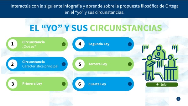 Interactúa con la siguiente infografía y aprende sobre la propuesta filosófica de Ortega en el “yo” y sus circunstancias.