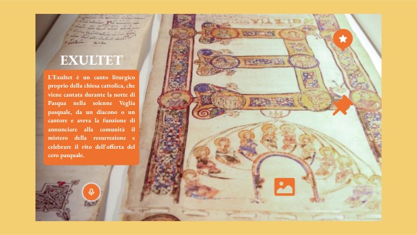 L'Exultet è un canto liturgico proprio della chiesa cattolica, che viene cantata durante la notte di Pasqua nella solenne Veglia pasquale, da un diacono o un cantore e aveva la funzione di annunciare alla comunità il mistero della resurrezione e celebrare il rito dell'offerta del cero pasquale.
