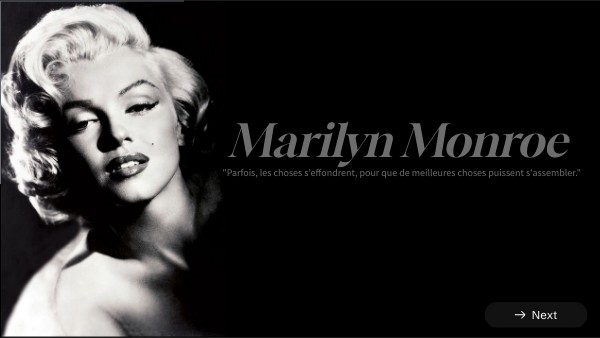Nom : Marilyn Monroe (Nom de naissance : Norma Jeane Mortenson) Date de naissance : 1er juin 1926 Lieu de naissance : Los Angeles, Californie, États-Unis Profession : Actrice, icône de la mode, chanteuse