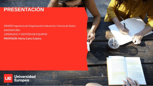 GRADO Ingeniería de Organización Industrial y Ciencia de Datos ASIGNATURA: LIDERAZGO Y GESTIÓN DE EQUIPOS PROFESOR: Marta Calvo Catoira