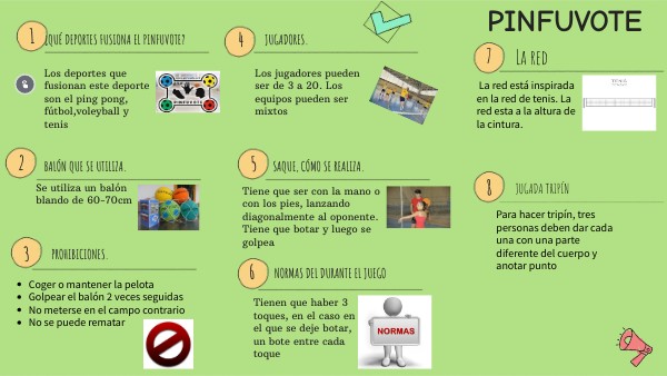 Los deportes que fusionan este deporte son el ping pong, fútbol,voleyball y tenis