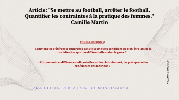 Article: "Se mettre au football, arrêter le football. Quantifier les contraintes à la pratique des femmes." Camille Martin