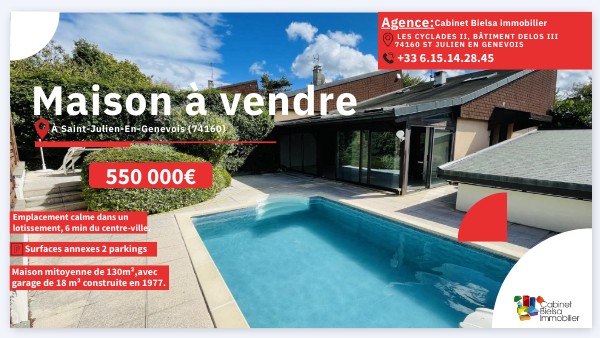 Maison mitoyenne de 130m²,avec garage de 18 m² construite en 1977.