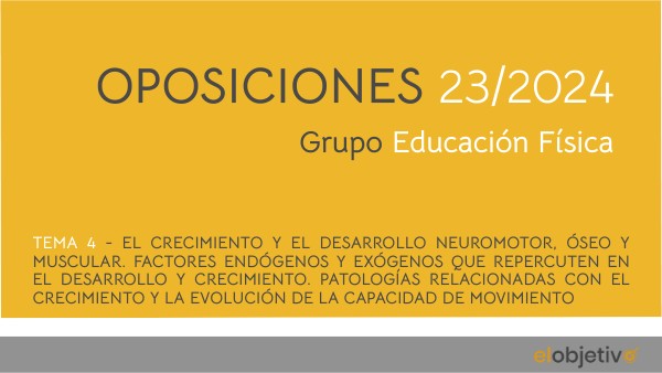 TEMA 4 - EL CRECIMIENTO Y EL DESARROLLO NEUROMOTOR, ÓSEO Y MUSCULAR. FACTORES ENDÓGENOS Y EXÓGENOS QUE REPERCUTEN EN EL DESARROLLO Y CRECIMIENTO. PATOLOGÍAS RELACIONADAS CON EL CRECIMIENTO Y LA EVOLUCIÓN DE LA CAPACIDAD DE MOVIMIENTO