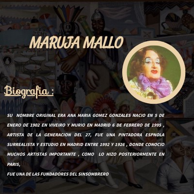 su nombre original era ana maria gomez gonzales nacio en 5 de enero de 1902 en Viveiro y murio en Madrid 6 de febrero de 1995 , artista de la generacion del 27, fue una pintadora Espnola SURREALISTA Y ESTUDIO EN MADRID ENTrE 1992 Y 1926 , DONDE CONOCIO MUCHOS ARTISTAS IMPORTANTE , como lo hizo posteriormente en Paris,fue una de las fundadores del sinsombrero