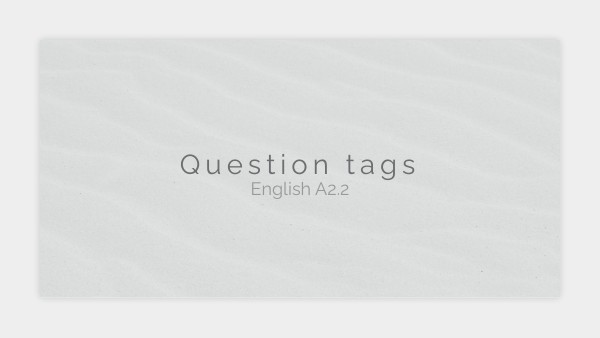 Question tags are really short "questions" at the end of a phrase. They are mainly used in speech when we want to: - to confirm or to check information - to ask for agreement - to seek clarification - to encourage a reply from the person we are speaking to