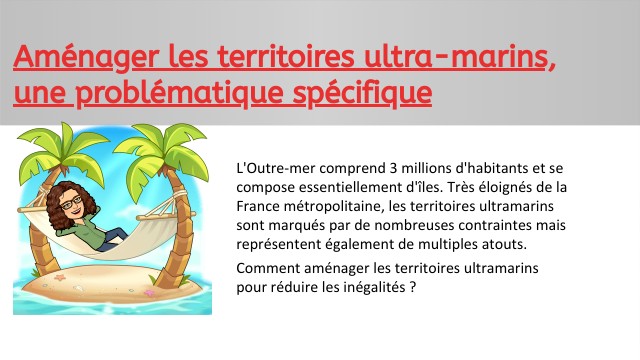 L'Outre-mer comprend 3 millions d'habitants et se compose essentiellement d'îles. Très éloignés de la France métropolitaine, les territoires ultramarins sont marqués par de nombreuses contraintes mais représentent également de multiples atouts. Comment aménager les territoires ultramarins pour réduire les inégalités ?