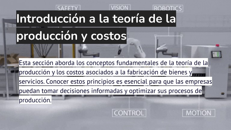 Esta sección aborda los conceptos fundamentales de la teoría de la producción y los costos asociados a la fabricación de bienes y servicios. Conocer estos principios es esencial para que las empresas puedan tomar decisiones informadas y optimizar sus procesos de producción.