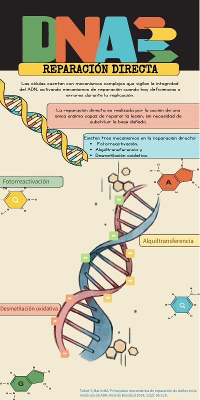Tafurt Y, Marin MA. Principales mecanismos de reparación de daños en la molécula de ADN. Revista Biosalud 2014; 13(2): 95-110.
