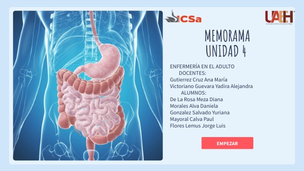 ENFERMERÍA EN EL ADULTO DOCENTES: Gutierrez Cruz Ana María Victoriano Guevara Yadira Alejandra ALUMNOS: De La Rosa Meza Diana Morales Alva Daniela Gonzalez Salvado Yuriana Mayoral Calva Paul Flores Lemus Jorge Luis