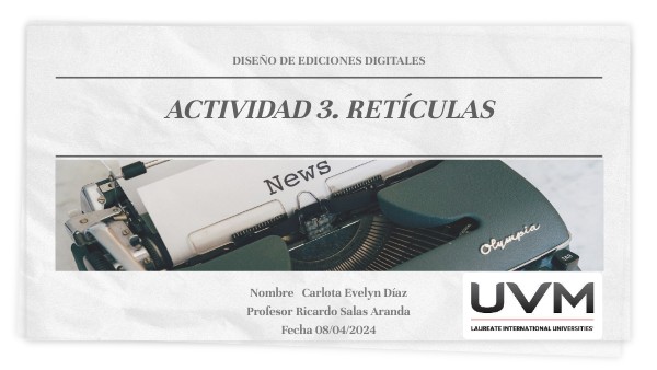 Describe las diferencias y similitudes entre las retículas de las publicaciones que elegisteEn las publicaciones tabloides que son tipo periódico se utilizan retículas jerárquicas, aunque en las mismas se utiliza en menor manera la retícula de columna, es una combinación de las dos. A diferencia de la que es tamaño carta que maneja una retícula modular. ¿Cómo se relacionan las jerarquías de información con las retículas? Al combinar el uso de las retículas con las jerarquías de información se genera una estructura visual, organizada, coherente, en el diseño de cualquier edición, haciendo que esta sea fácil de leer, fácil de comprender y organizado para el lector. ¿Cuál es la relación entre una retícula y el tipo de publicación? En la realización de publicaciones es muy importante conocer el tipo de retícula a utilizar, ya que esta ultima sirve para garantizar una publicación atractiva visualmente, legible y sea fácil de comprender por el lector. ¿Cuál es la importancia de las retículas para la composición gráfica de publicaciones? El uso de las retículas en el diseño de las publicaciones es importante por que tiene la facilidad de ordenar el espacio de la hoja, alinear la información logrando un equilibrio visual, y facilitar la realización del diseño Después del ejercicio, ¿notaste alguna diferencia en la forma de leer las publicaciones? ¿Hubo algo que no habías detectado en la primera visualización de las publicaciones y formatos? Describe. Me hizo ver la organización de la información de diferente manera, jerarquizando los elementos principales y ordenando mis ideas al momento de ir leyendo la información.