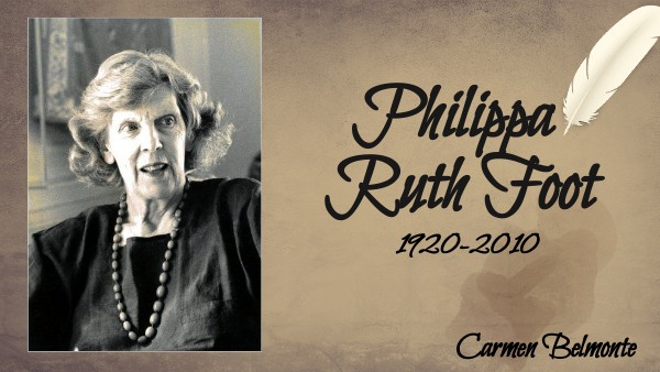 Philippa Ruth Foot, nacio en Lincolnshire, 3 de octubre de 1920 fue educada en Somerville College, donde estudió Filosofía, Política y Economía. Fue nieta del presidente estadounidense. De niña fue educada en su casa y nunca recibió educación de buen nivel, hasta que una de sus institutrices le insistió para que fuese a Oxford, por lo que pasó un año bajo de la tutela de un profesor para preparar su examen de ingreso y también la dieron clases de latín por correspondencia. Su estancia en Somerville fue interrumpida de 1942 a 1947 durante la Segunda Guerra Mundial, donde estuvo trabajando como economista para el gobierno. El resto de su vida, fue profesora de Filosofía, becaria y tutora, investigadora principal y becaria honorífica.
