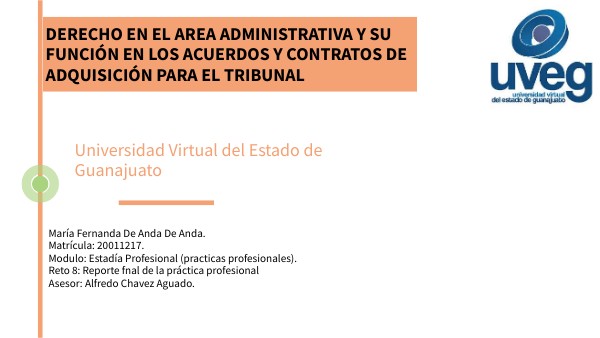 María Fernanda De Anda De Anda. Matrícula: 20011217. Modulo: Estadía Profesional (prácticas profesionales). Reto 8: Reporte fnal de la práctica profesional. Asesor: Alfredo Chavez Aguado.