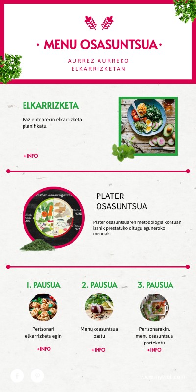 Plater osasuntsuaren metodologia kontuan izanik prestatuko ditugu eguneroko menuak.
