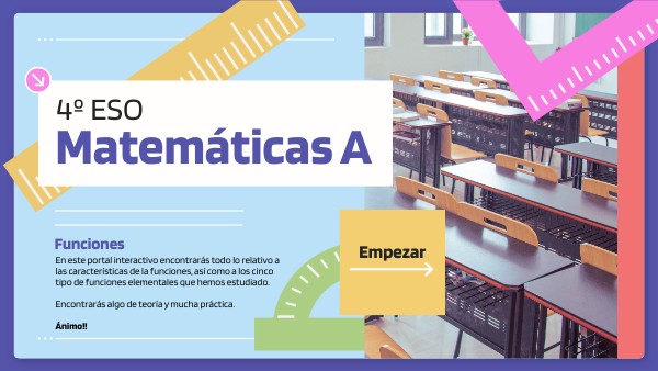 En este portal interactivo encontrarás todo lo relativo a las características de la funciones, así como a los cinco tipo de funciones elementales que hemos estudiado. Encontrarás algo de teoría y mucha práctica. Ánimo!!