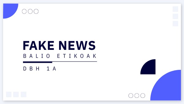 Gaur egun, internet informazio iturri naguasia bihurtu da baina arazo bat dago, sarean publikatzen den guztia ez da egia. Sarean informazio faltsua, zehaztugabea interesagarria eta egiazkoa existitzen da. “Fake news” deitzen ditugu egia ez diren berriei edo informazioari. Jendea gai baten edo batzuen inguruan desinformatzeko albistetan, prentsa idatzian, irratian telebista eta sare sozialen bidez hedatzen den iruzur mota bat da.