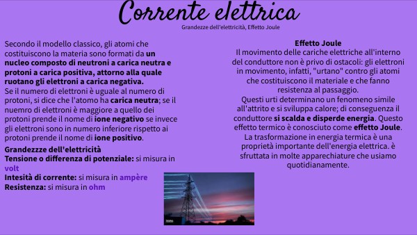 Effetto Joule Il movimento delle cariche elettriche all'interno del conduttore non è privo di ostacoli: gli elettroni in movimento, infatti, "urtano" contro gli atomi che costituiscono il materiale e che fanno resistenza al passaggio. Questi urti determinano un fenomeno simile all'attrito e si sviluppa calore; di conseguenza il conduttore si scalda e disperde energia. Questo effetto termico è conosciuto come effetto Joule. La trasformazione in energia termica è una proprietà importante dell'energia elettrica. è sfruttata in molte apparechiature che usiamo quotidianamente.
