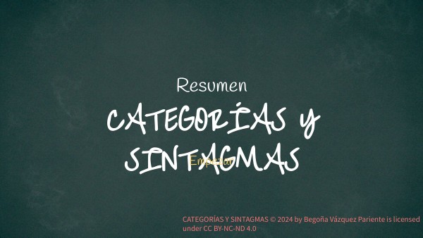 CATEGORÍAS Y SINTAGMAS © 2024 by Begoña Vázquez Pariente is licensed under CC BY-NC-ND 4.0