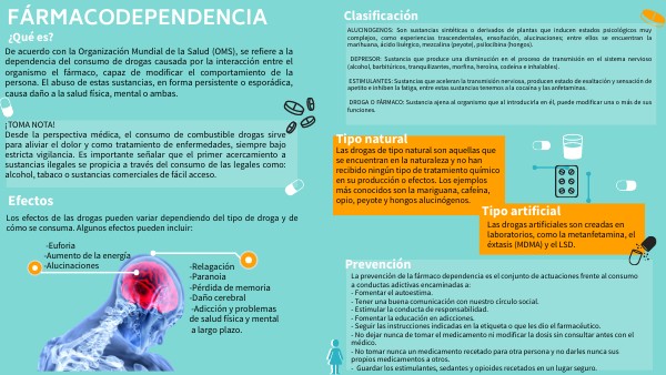 ¿Qué es? La dependencia de drogas, según la OMS, se produce cuando el consumo de una sustancia modifica el comportamiento de la persona y causa daño a su salud física, mental o ambas.
