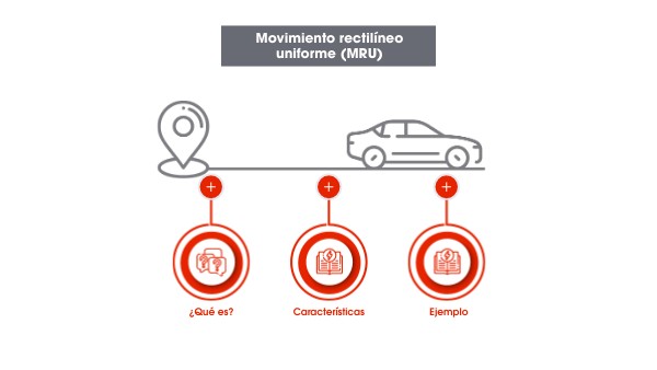 Todo objeto que se encuentre en movimiento rectilíneo uniforme tiene trayectoria rectilínea, su velocidad es constante, no cambia, se desplaza uniforme con intervalos y distancias iguales, y la velocidad del vehículo no cambia, no hay aceleración.