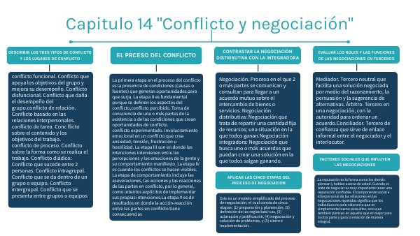 conflicto funcional. Conflicto que apoya los objetivos del grupo y mejora su desempeño. Conflicto disfuncional. Conflicto que daña el desempeño del grupo.conflicto de relación. Conflicto basado en las relaciones interpersonales. conflicto de tarea. Conc flicto sobre el contenido y los objetivos del trabajo. conflicto de proceso. Conflicto sobre la forma como se realiza el trabajo. Conflicto diádico: Conflicto que sucede entre 2 personas. Conflicto intragrupal. Conflicto que se da dentro de un grupo o equipo. Conflicto intergrupal. Conflicto que se presenta entre grupos o equipos