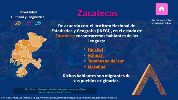 De acuerdo con el Instituto Nacional de Estadística y Geografía (INEGI), en el estado de Zacatecas encontraremos hablantes de las lenguas:
