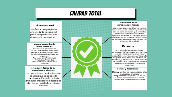 Dentro de los procesos de calidad, sean bienes o servicios, existen el modelo denominado 7M, el cual integra los siguientes aspectos: *mano de obra *materiales *maquinas *metodos *medioambiente *mentalidad *moneda
