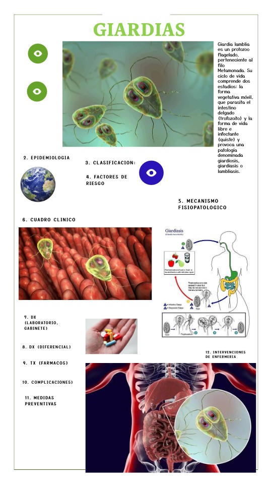 Giardia lamblia es un protozoo flagelado, perteneciente al filo Metamonada. Su ciclo de vida comprende dos estadios: la forma vegetativa móvil, que parasita el intestino delgado (trofozoíto) y la forma de vida libre e infectante (quiste) y provoca una patología denominada giardiosis, giardiasis o lambliasis.