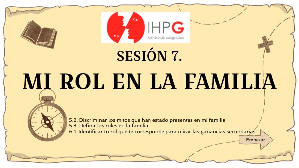 5.2. Discriminar los mitos que han estado presentes en mi familia 5.3. Definir los roles en la familia. 6.1. Identificar tu rol que te corresponde.para mirar las ganancias secundarias.