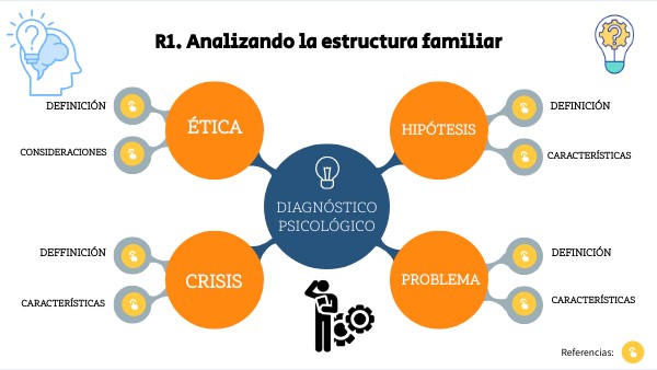 Referencias: Universidad Virtual del Estado de Guanajuato. Obtenido de Lección 1. Introducción al diagnóstico, obtenido de: https://avalicmod19c.uveg.edu.mx/mod/scorm/player.php?a=5271¤torg=DP_U1_L1_ORG&scoid=11298 Universidad Virtual del Estado de Guanajuato. Obtenido de Lección 2. Ética en el diagnóstico, obtenido de: https://avalicmod19c.uveg.edu.mx/mod/scorm/player.php?a=5273¤torg=DP_U1_L2_ORG&scoid=11302 Hernández-Sampieri y Mendoza, C. P. (2018). Metodología de la investigación: las rutas cuantitativa, cualitativa y mixta. McGraw Hill. Martín, M. C (2021). Guía práctica de evaluación psicológica clínica: desarrollo de competencias. Pirámide.